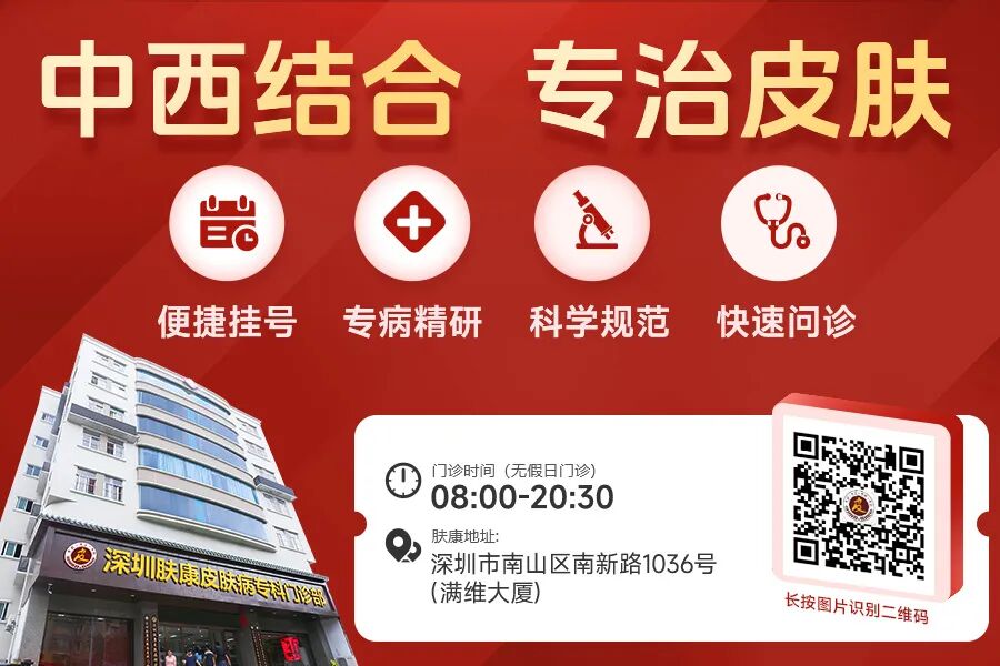 深圳肤康皮肤科医师温馨提示:毛囊炎要及时诊治,不可私自用药或拖延不治,会带来严重的危害,影响患者日常生活与工作。深圳肤康治毛囊炎,中西医结合分型诊治,更专业更规范。