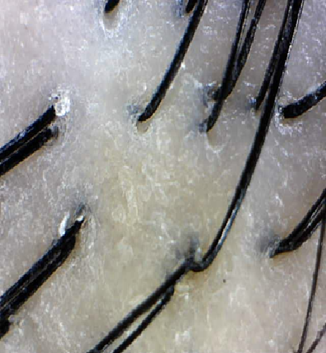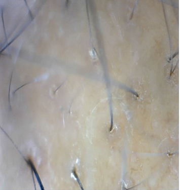 大家可以看看脱发的图片和毛囊萎缩的图片对比之前的几种情况有什么不同?油脂长期不清洁,油脂堵塞了毛囊,刚长出来的头发被掩埋了。就像洪水之后的河滩,小树苗被淤泥掩埋了一样。