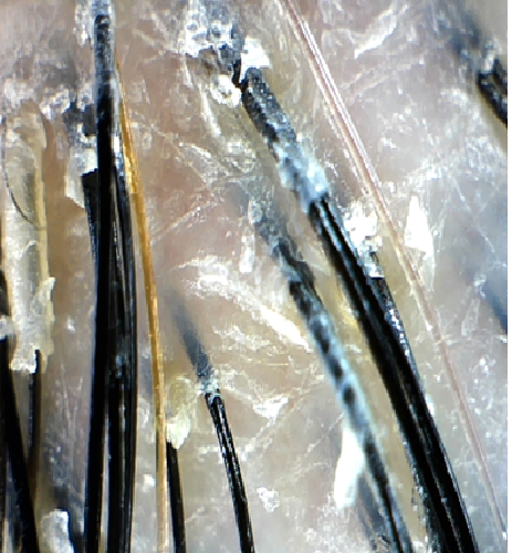 第一张图是头皮布满了油脂,第二张图是布满了油脂和油性头皮屑都粘在头皮和头发上无法脱落。这就是油性头皮和油性头皮屑的特征,还会伴有异味。