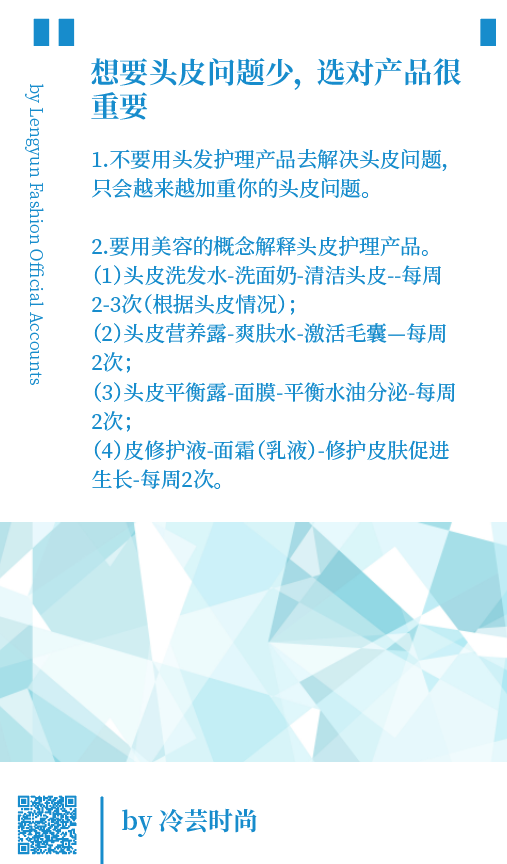 1.不要用头发护理产品去解决头皮问题,只会越来越加重你的头皮问题。