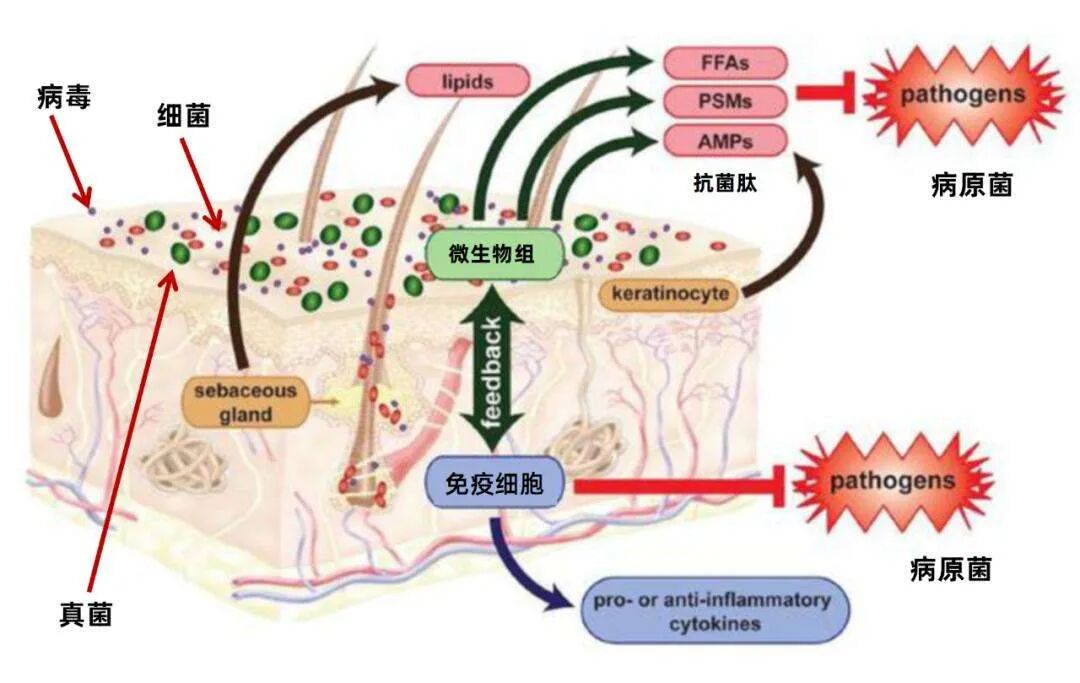 这种固有菌群和暂居菌群形成的和谐的微生态系,可以形成一个稳定且和谐的生物屏障,保护皮肤健康。