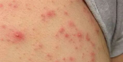 单纯性毛囊炎:就是突然长出来的红色小疙瘩,很痒,周围还会红红的。