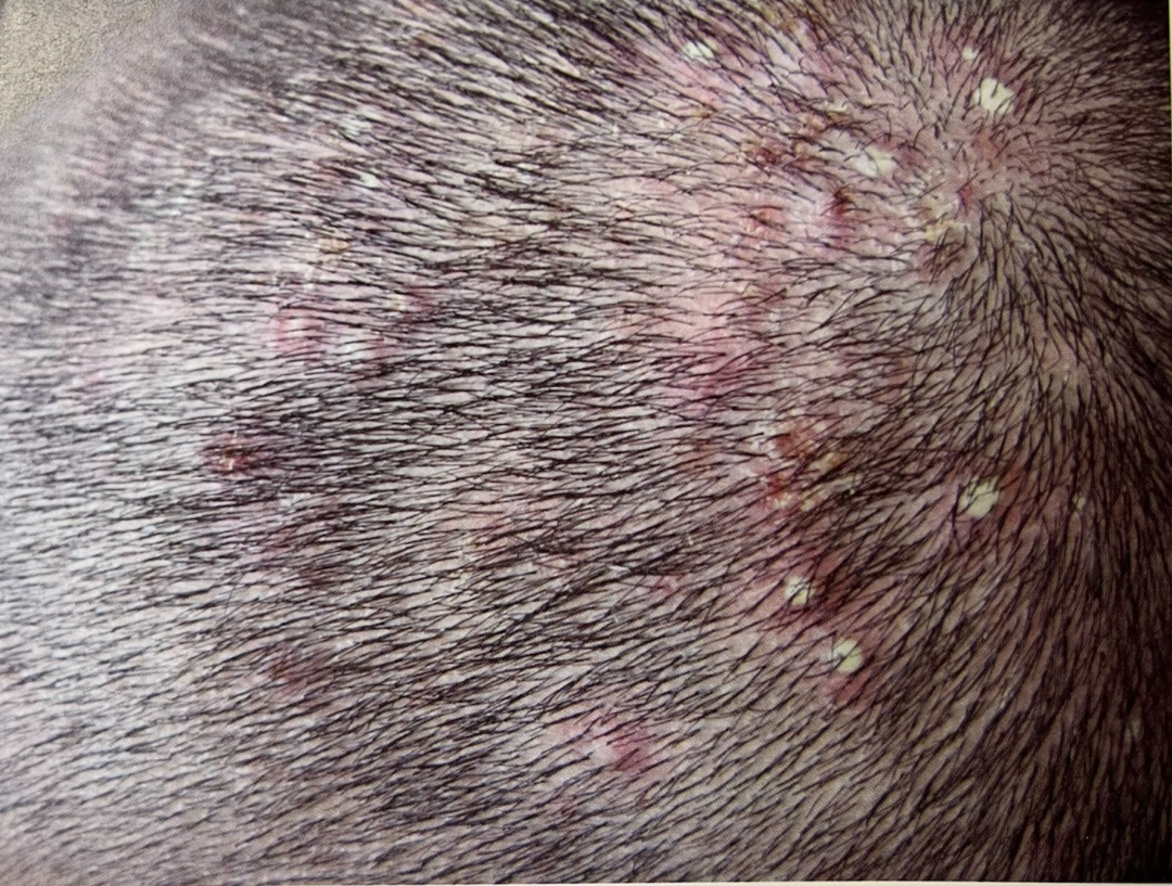 它的样子看起来是一个个毛囊脓疱和毛囊红斑状丘疹,瘙痒是最常见的症状,部分患者还会有疼痛性脓包。
