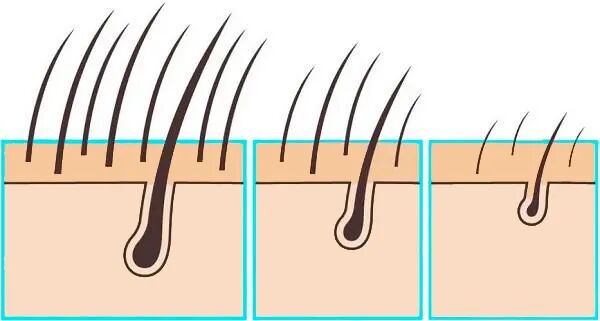 观察两个部位的头发,如果粗细、状态有明显的差别,可以判断这部分掉落的头发所在的毛囊已经逐渐萎缩了。