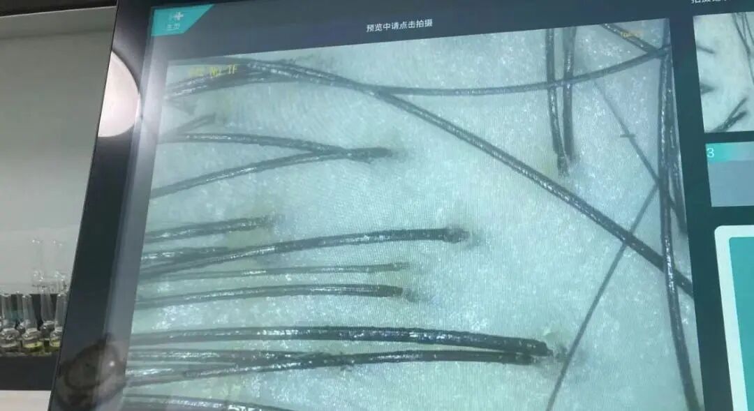 毛囊检测不仅可以分辨出一些明显的头皮疾病,还可以很直观的看到:头皮的颜色、毛囊萎缩坏死情况和毛囊分布密度,哪些头发即将脱落,哪些是新生长出来的头发等等。