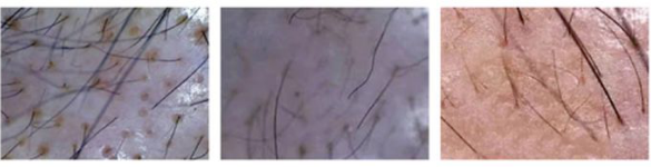 不同头皮问题可以通过头皮智能检测仪设备查看,镜检下不同原因造成的脱发有不同呈现。