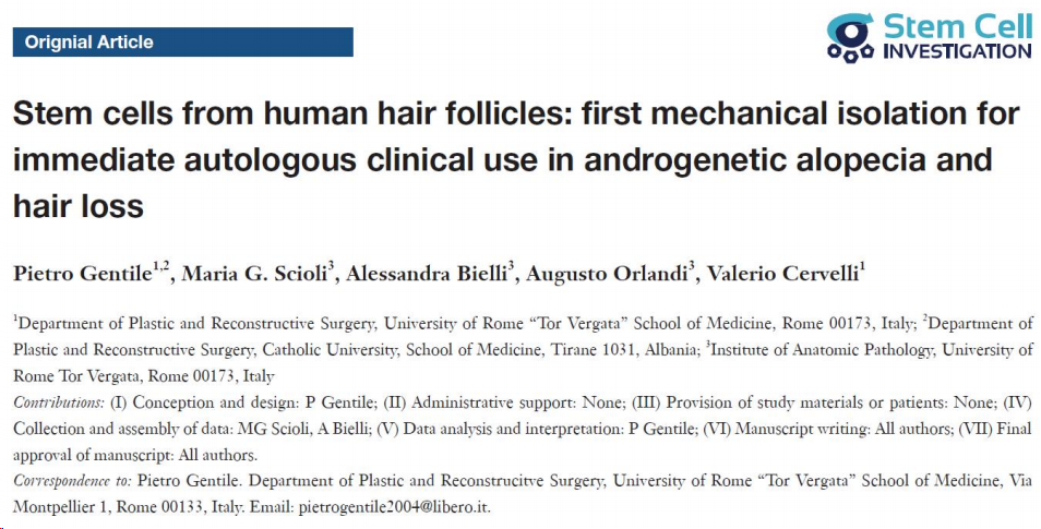 [5]Gentile P , Scioli M G , Bielli A ,et al.Stem cells from human hair follicles: first mechanical isolation for immediate autologous clinical use in androgenetic alopecia and hair loss[J].Stem Cell Investigation, 2017, 4(7):58.DOI:10.21037/sci.2017.06.04.