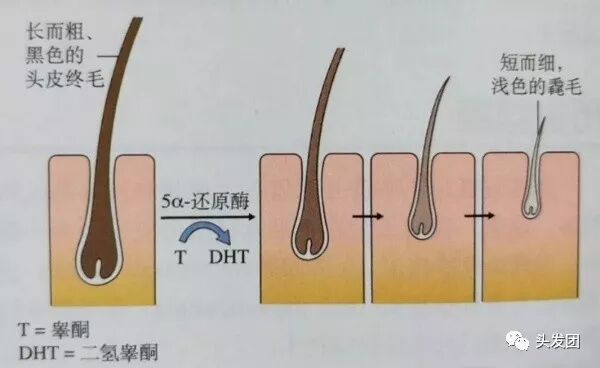一张图看懂脱发原理:DHT在毛囊中的作用,最终导致雄脱(遗传性脱发)