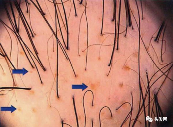 6.不过皮肤镜的观测在学术上是有价值的,用于分辨极端情况下头皮情况。接下来我们来聊聊雄脱的皮肤镜到底能看到些什么。