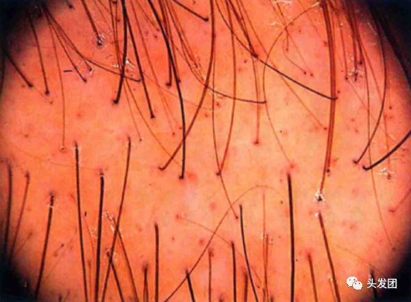 接下来,咱们看看皮肤镜下的雄激素脱发是什么样。