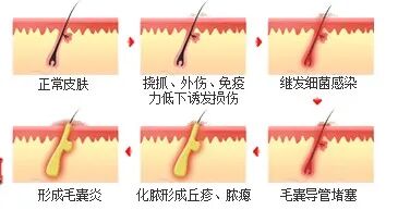 5、其他原因导致的皮脂分泌、毛囊角化不良、细菌感染,睡眠、饮食、环境、胃肠功能、汗腺分泌、体质、维生素缺乏等因素都会影响。