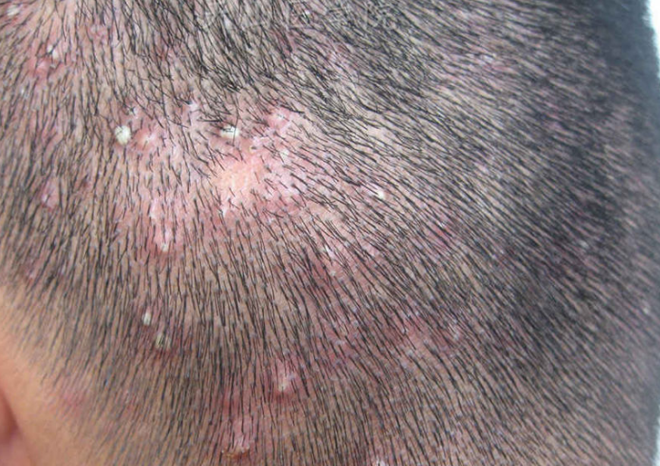 又称瘢痕疙瘩性毛囊炎、发际疮和项部毛疮等,多发于中老年男性,尤其是患有痤疮及瘢痕疙瘩体质者容易患本病。初期时,项部发际处出现红色小丘疹或小脓疱,互相融合,逐渐发展成瘢痕疙瘩性硬结,有圆形、卵形和不规则形。一般发于项后毛发部位,患处头发稀少或完全脱落,病程缓慢,常数年不愈。