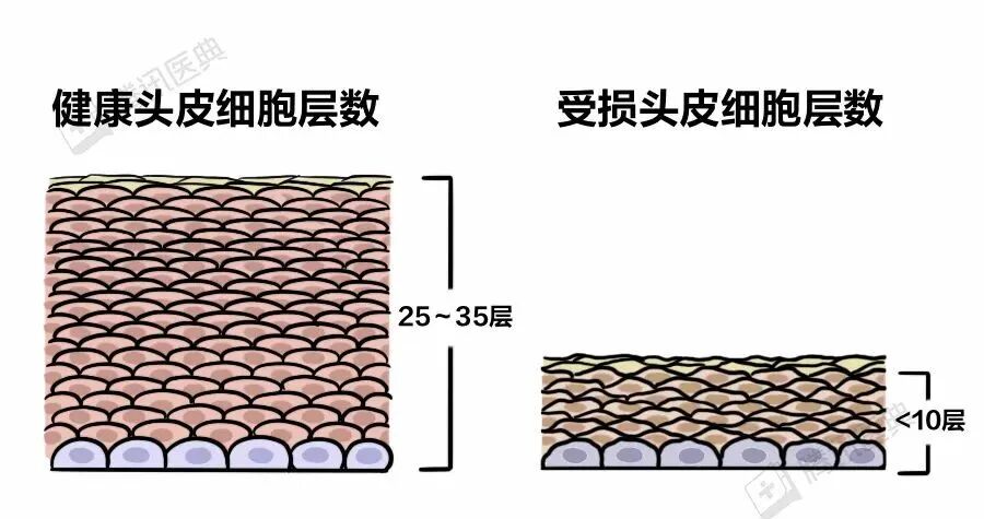 如果还不及时控制炎症,头皮就会持续被破坏,角质层明显变薄。