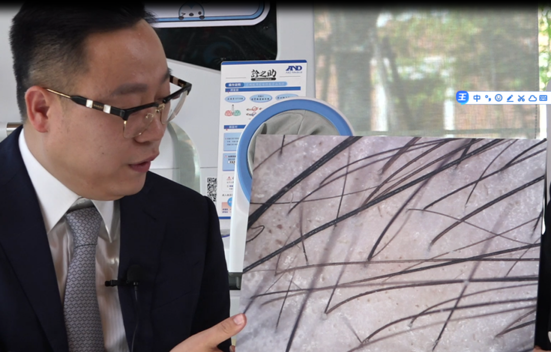 皮肤显微镜(皮肤CT):可以穿透到不同皮层,可以在不同层次看到我们的皮肤毛囊是否健康,甚至还能看到毛囊虫等。