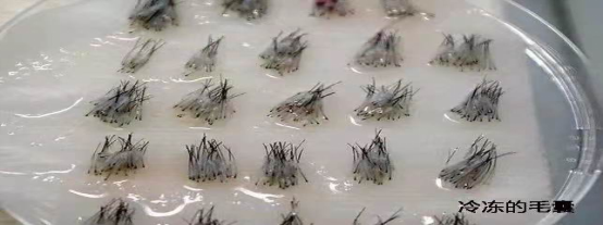 移植体从获取的即刻起,到再次植入头皮前,都需要低温水化保存。毛囊应浸泡在低温盐水中,保存液的理想温度在0-4度中。取下来的毛囊以及分离好后的毛囊,要绝对湿润,严禁干燥。不低温培养,毛囊就会死掉,难以存活。