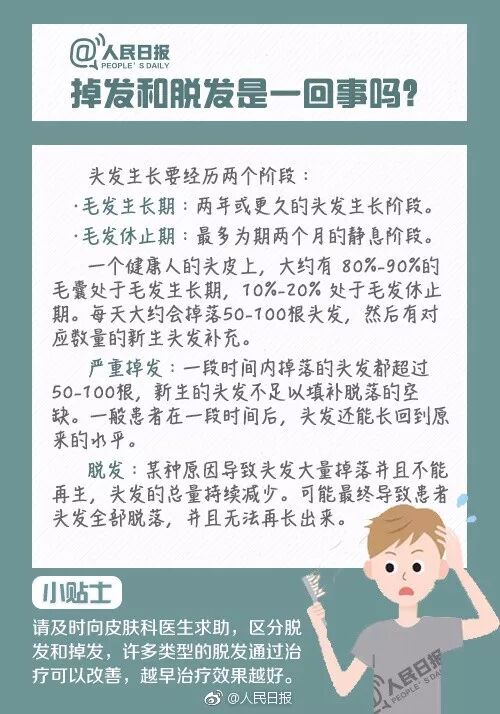 孔庆云介绍,掉发不等于脱发,一天掉几十根是很正常的,掉了的会再长出来,但超过100根就不正常了。