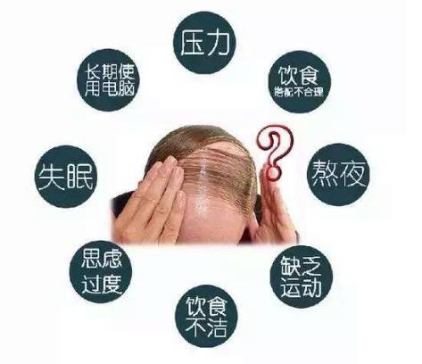 孔庆云表示,现代人生活节奏快,就业、工作、家庭负担等压力,尤其在青中年人群中表现突出。精神过度紧张,肌体过度劳累,会改变机体内环境,导致人体免疫功能异常,这是脱发的内在因素。