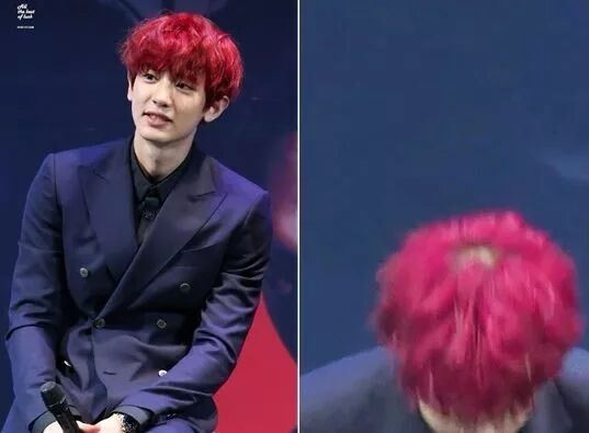 明星们因为造型需要,烫染头发很频繁。之前EXO成员朴灿烈低头时就被拍到露出一片地中海秃,疑似就是因为频繁染发所致。当然我觉得也有可能是压力性脱发,心疼~▼