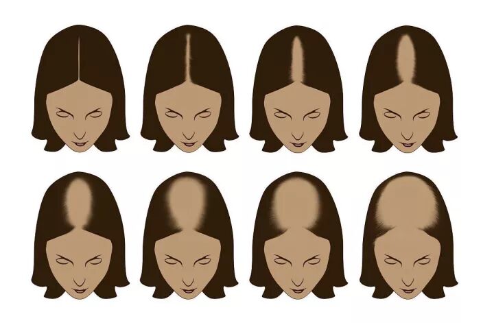 男人和女人都可能发生雄性秃发,但脱发的表现有所不同。男生是前额发际线大量后移,头顶发旋位置逐渐光秃。女生一般发际线还在,但头顶部的头发会逐渐稀疏、变细、变少,尤其是中分或偏分的发缝线变得越来越宽。▼