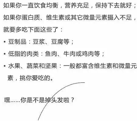 靠节食减肥的女同胞们注意了:过度节食,会造成消化吸收机能障碍,难以有充足的蛋白质、铁、锌等营养供给头发毛囊,最后可能体重没减多少,头发掉了不少。