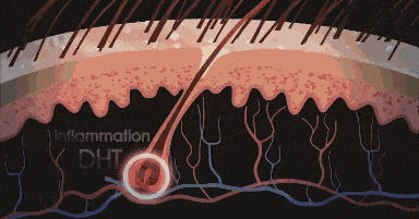 男性成年之后,DHT越来越多,这时很多毛囊逐渐开始被压制,不断萎缩,头发开始变细软、变少,头顶或前额出现明显的脱发区域。
