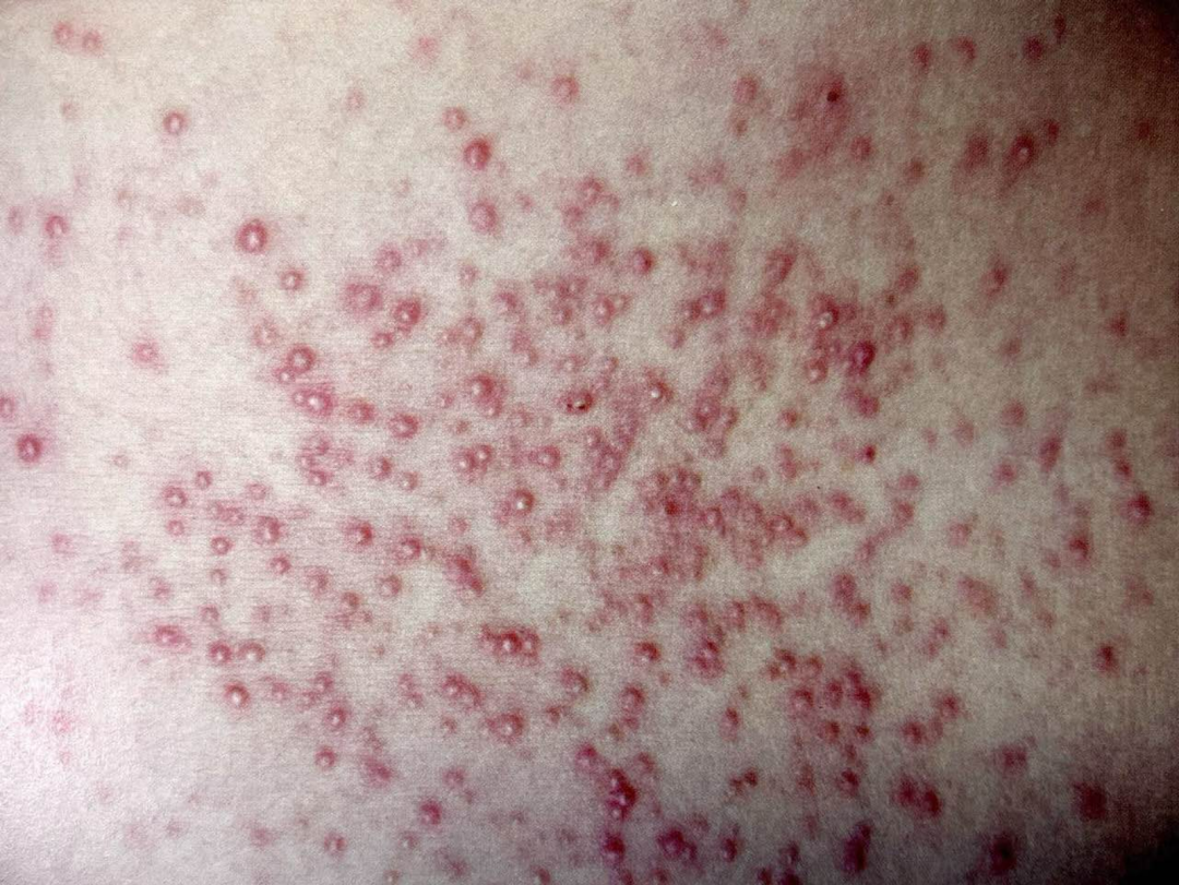 它的样子看起来是一个个毛囊脓疱和毛囊红斑状丘疹,瘙痒是最常见的症状,部分患者还会有疼痛性脓包。