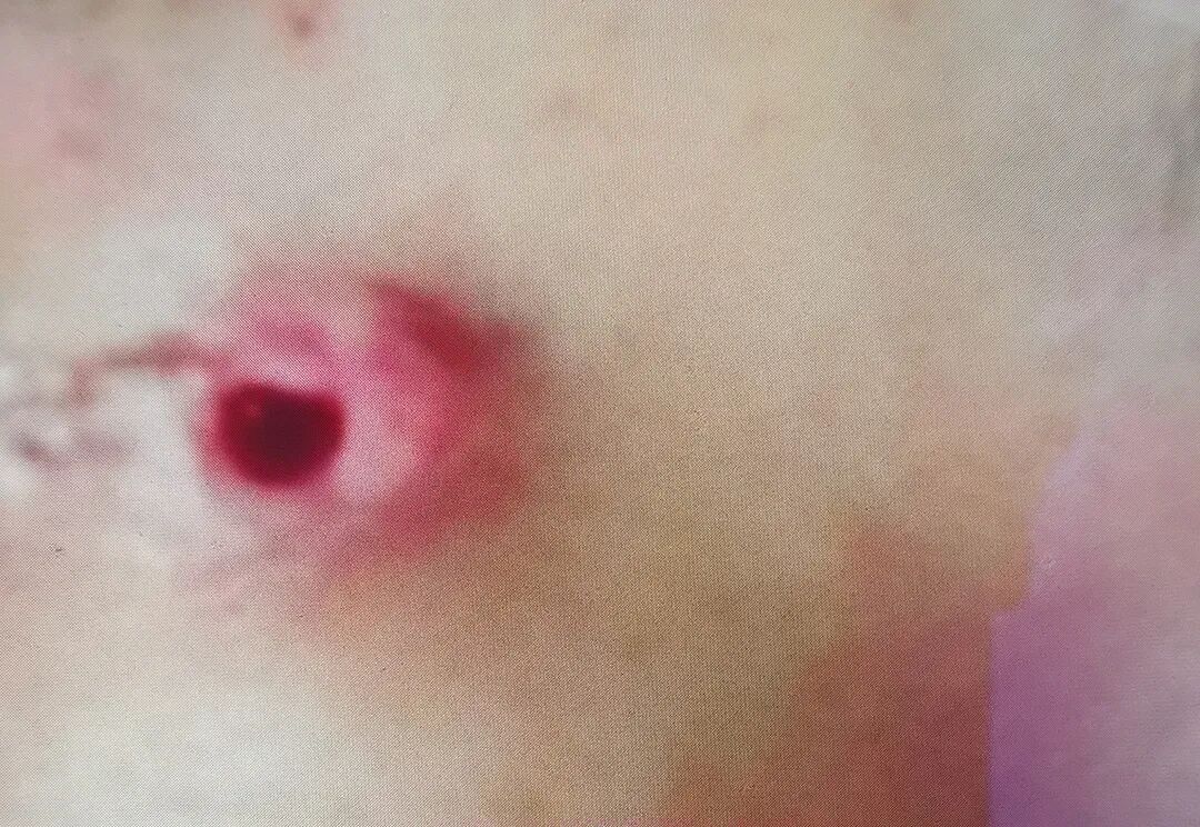 经杨主任诊断,张女士弟弟身上的这个大红疙瘩为肩部疤痕疙瘩,且因疤痕疙瘩面积较大,属于比较严重的现象。不仅如此,除了左肩上,张女士弟弟身上其他位置也有因毛囊炎引起的大大小小几个疤痕疙瘩。
