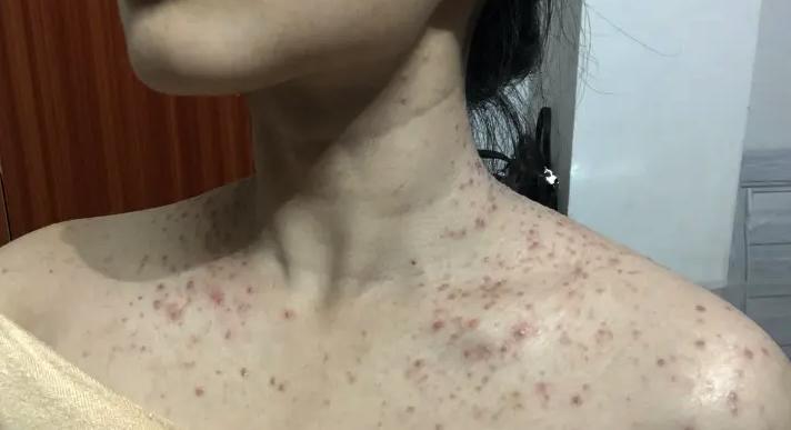 张女士弟弟身上因毛囊炎而形成的疤痕疙瘩