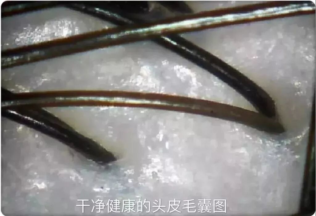 我们可以通过专业的头皮检测仪器检测毛囊状态,健康的毛囊是漩涡状的,表面没有明显的堆积物,看着光洁而有弹性。一个毛囊里大概有2-4根的头发,每根头发粗细相差不多,没有明显特别细的发丝。
