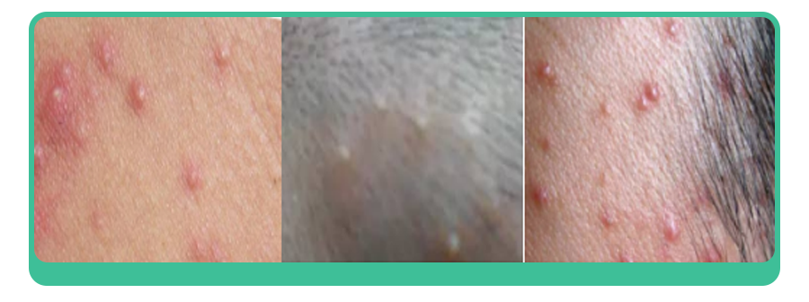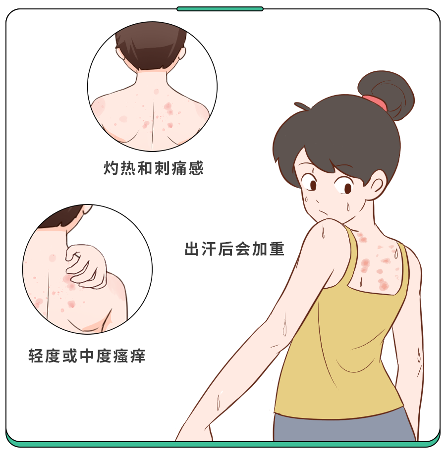 好发部位:头面部、身体多毛地方,伴有瘙痒和刺痛。