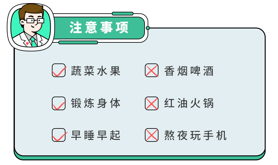 另外也要注意饮食,喜欢吃辛辣油腻食物的朋友一定要管住嘴哦,不然它会反反复复缠上你!