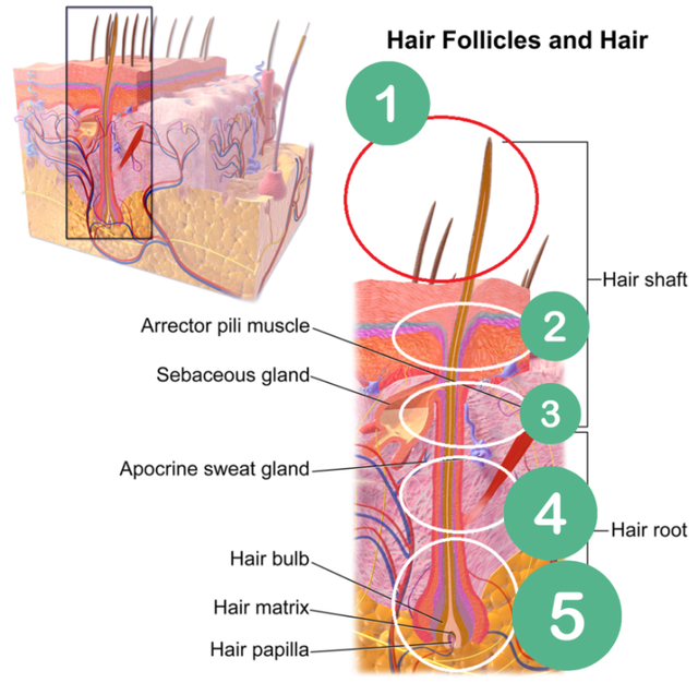 在我们头发的生长过程中,所有的毛囊都会周期性地经历一个由生长期(生长)、退行期(退化)和休止期(休息)组成的毛发周期,好比人的出生、成长和衰老。