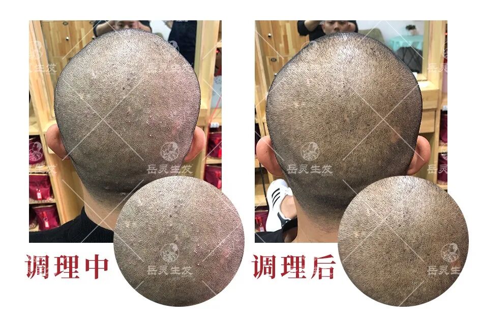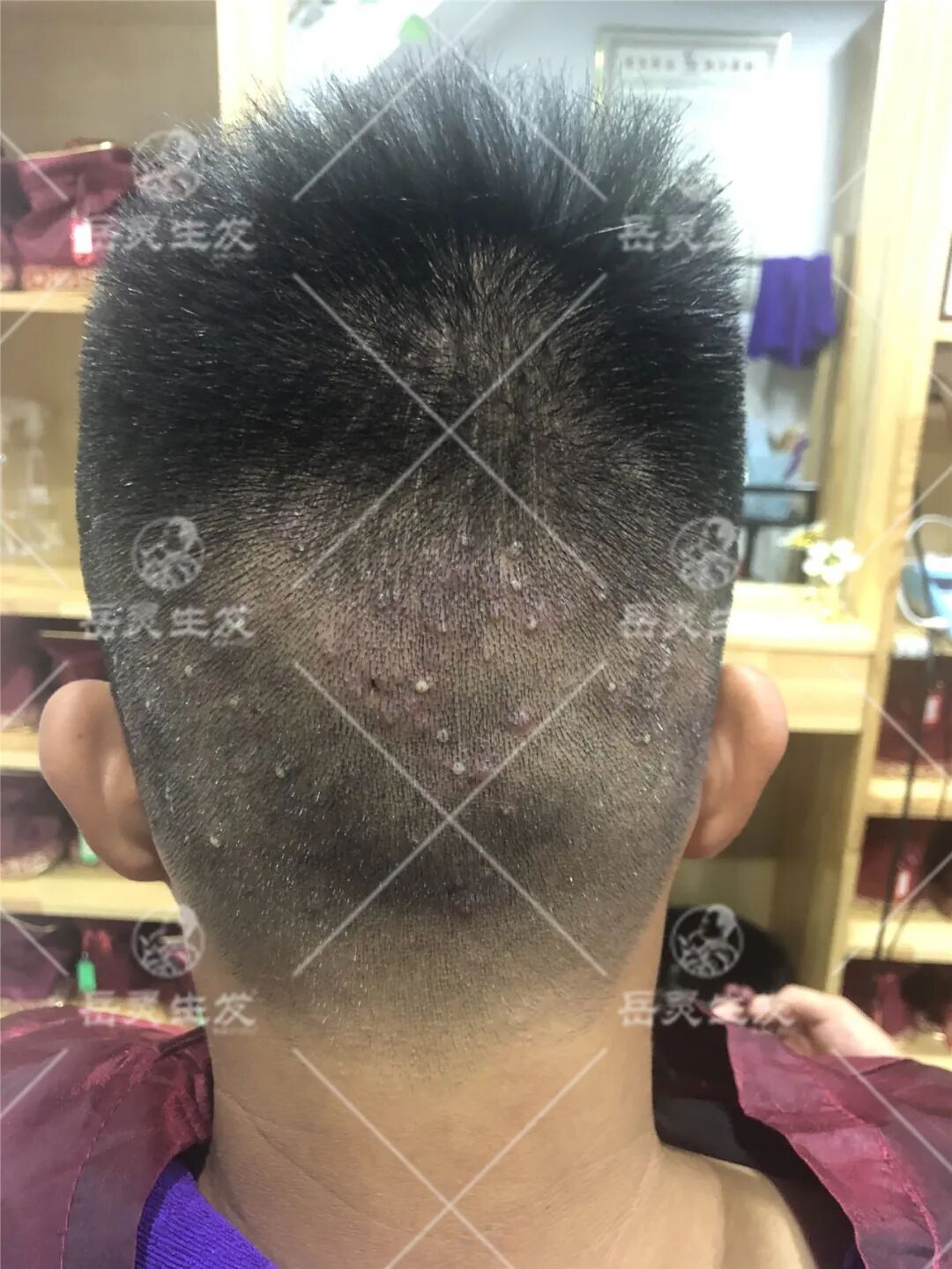 后期在毛囊炎复原后,使用护发液+育发液+苦参液的配方对毛囊进行持续性养护,20天为一周期,养护频次调整为1周1次。