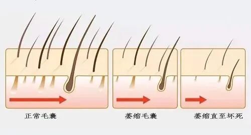 毛囊的发育经过表皮和真皮之间一系列复杂的相互作用形成,具有周期性,当毛囊处于衰弱或者坏死状态时就形成了脱发。