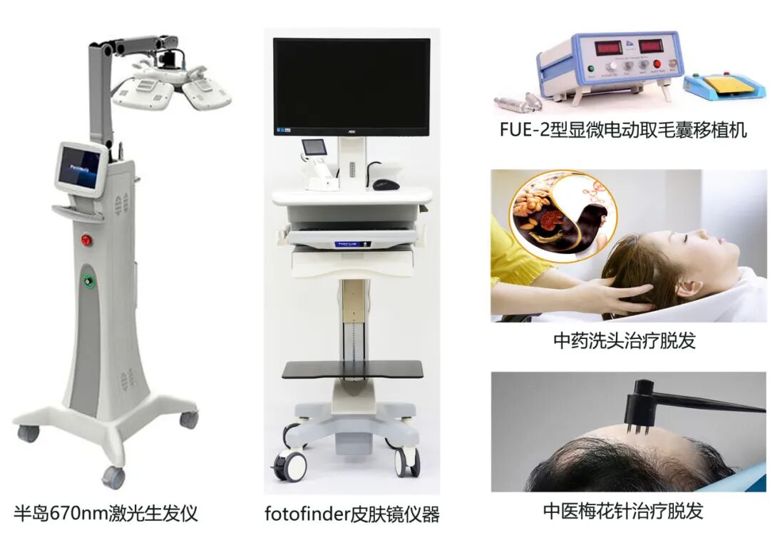 我院毛发诊疗中心脱发专病门诊开诊以来,秉承个体化治疗的原则,有内服中药或西药、外用生发药物、中医特色疗法(如梅花针扣刺和针灸治疗等),光疗及局部药物注射、植发等多种治疗手段。