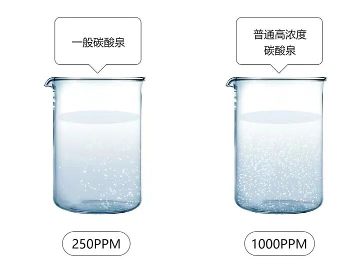 碳酸泉也称为二氧化碳泉,是指在1升水中二氧化碳的含量在0.25g(250mg/l)以上。当二氧化碳浓度达到1000mg/l以上时,这种水被称为疗养泉。