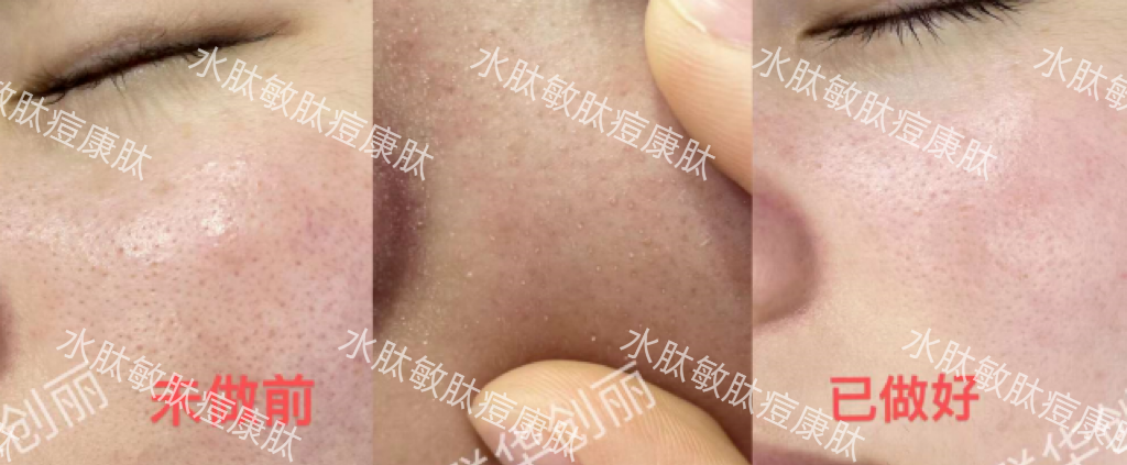 项目过程中,鼻翼两侧的粉刺、黑头冒出,这就是张开毛孔后,清除垃圾的过程;项目后,不仅褪去了大面积泛红,肌肤也明显细腻,毛孔也缩小了