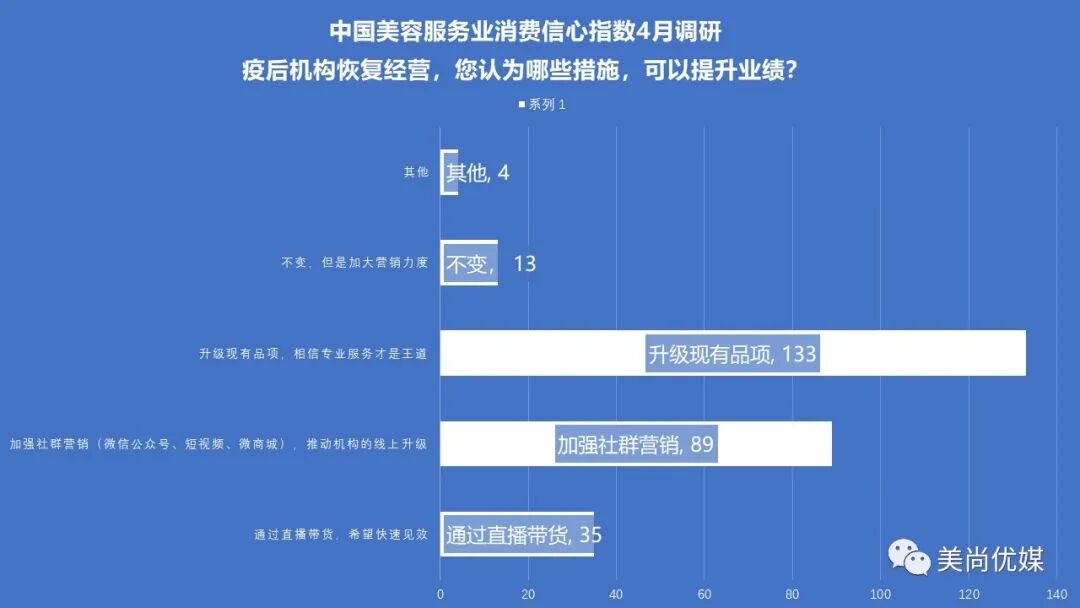 年4月23日,《美尚优媒》发布中国美容服务业消费信心指数4月调研报告!通过调研我们发现:美容机构面对新冠疫情的巨大冲击,纷纷求变升级!