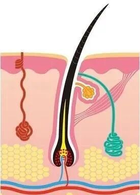 我们知道,分泌油脂的皮脂腺,分泌汗液的大汗腺都开口于毛囊。