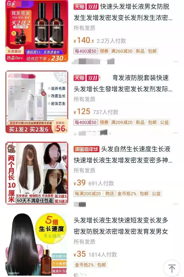网上火爆的生发水、生发精油等产品,都是通过外部刺激作用于毛囊,取得让头发生长的效果。但是这些产品的质量参差不齐,有些还特意强调快速生发防脱的疗效,说的头头是道,很多消费者并不能有效辨别。