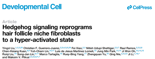 2022年6月30日,Cell子刊Developmental Cell上的一项新研究,揭示了一种能激活头发生长的关键信号分子,为治疗雄性激素源性脱发提供了治疗靶点。