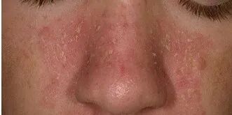 脂溢性皮炎的典型损害为暗黄红色丘疹或斑片,边缘清楚,表面被覆油腻性鳞屑或痂皮,伴有不同程度的瘙痒。这些症状常见于多皮脂、多毛、多汗部位,如头皮、面部、耳后、腋窝、胸背、脐窝及耻骨部。根据皮损表现不同,可分为干性和湿性两类: