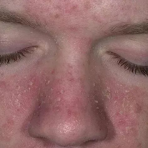 常见是眉部、鼻唇沟出现油腻性细小的鳞屑,基底发红,周围有红色小丘疹散在。可能会出现边缘性眼缘炎和结膜刺激症状。一般头部脂溢性皮炎可出现头发脱落、稀疏,伴发脂溢性脱发。