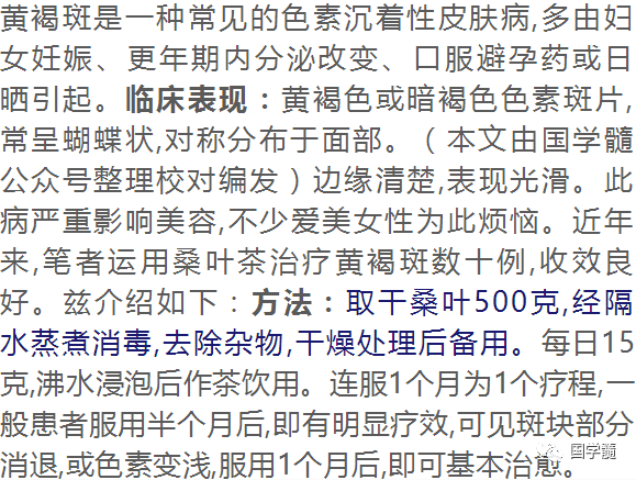 祛湿健发汤治疗脂溢性脱发,桑叶茶治黄褐斑