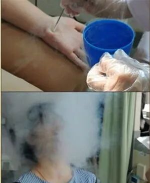 分喷射法和接触冷冻疗法。接触冷冻疗法通过极度冷冻的状态下将病区细胞、病毒迅速杀死,使得病区得到正常的恢复;喷射法具有消炎、止痒、抗过敏等作用。可用于治疗鸡眼、各类皮肤赘疣、瘢痕疙瘩、慢性湿疹、结节性痒疹、脂溢性皮炎、神经性皮炎、过敏性皮炎等皮肤病。