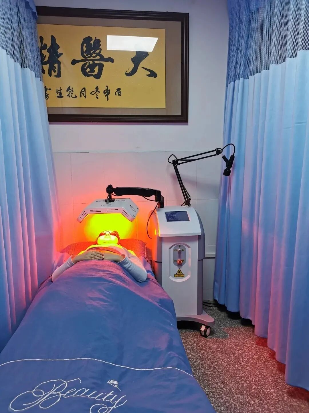 治疗上突出中医特色,重视外治,充分发挥外治法在皮肤科的运用优势,目前已开展了:药物面膜综合治疗、中药熏洗疗法、中药冷湿敷疗法、中药涂擦治疗、穴位注射、自血疗法、中药穴位贴敷、敷脐疗法、梅花针疗法、中药吹哄疗法、火针、针灸、耳穴压豆、拔罐等中医特色治疗项目及激光、液氮冷冻疗法、红蓝光治疗等西医治疗项目,方法独特,疗效明显,副作用小。