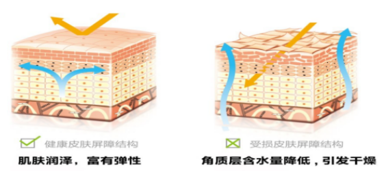 一旦皮肤屏障出现问题,外界的各种因素就会容易刺激到皮肤真皮层的血管神经,从而出现一系列症状。而皮肤水分和油脂也容易外透,进而导致皮损处出现干燥、脱屑、毛孔粗大等一系列问题,进一步损伤皮肤屏障,导致病情愈发严重。