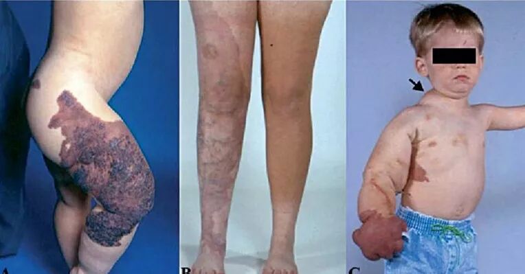 累及身体一侧且较大的鲜红斑痣常终身不退,甚至不断生长,如果只影响局部的皮肤、血管,还只属美观的问题,严重的情况可影响邻近组织出现深部血管畸形、软组织及骨肥大,此时称为血管扩张肥大及血管骨肥大综合征 Klippel–Trenaunay syndrome(KT综合征)。