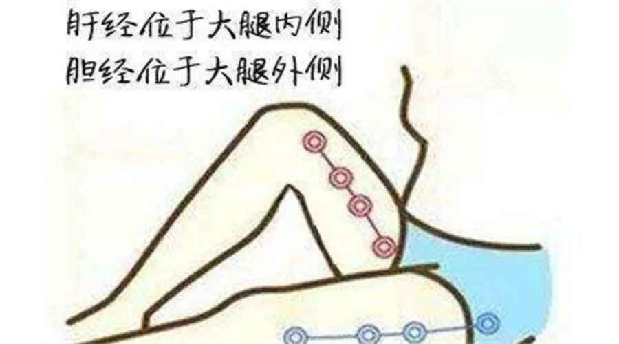 3.晚饭后拍打是从大腿内侧,拍打到膝关节附近。这两个区域都是肝胆在下肢循行的地方