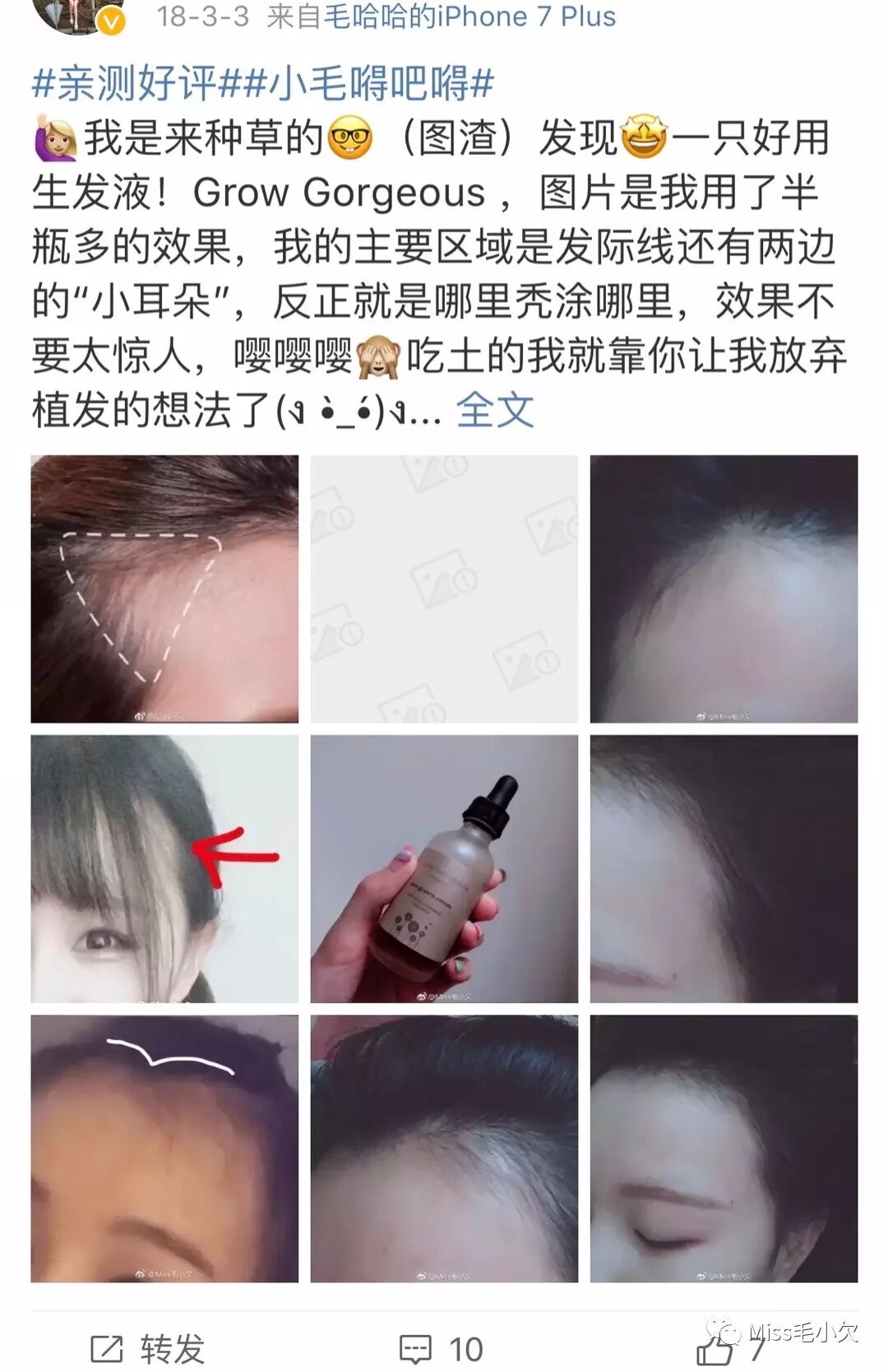 我很久之前就分享过的一个生发精华,买它也是看很多媒体杂志和网红都推荐过。全部是天然成分,所以在同类增发产品中它属于非常温和的,不用担心会有副作用。我主要是用在局部,为了拯救发际线上的两个小犄角,每天洗完头后点涂在希望增发的位置,用了一个月左右就能看到有很多新的头发长出来,发际线改变了,额头和脸型的线条视觉上也变得精致了。